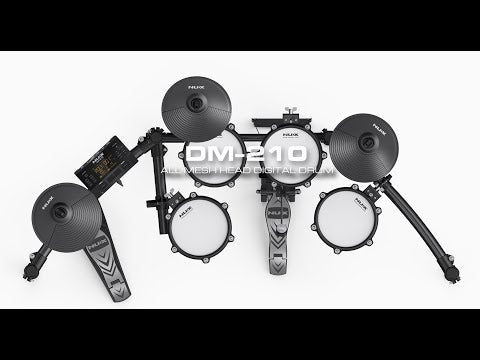 NUX DM-210 on NUX:in uusin sähkörumpusetti joka nostaa edullisen hintaluokan sähkörumpujen tasoa. NUX DM-210:ssa on kunnollinen tukeva teline, soundit jotka ovat hyvin lähellä akustista settiä (15 erilaista rumpusettiä) ja verkkokalvot joilla soittaminen on miellyttävää. Hyvät ominaisuudet kuten tallennus, opetustoiminto ja efektit joilla muokkaat rumpujen soundia viimeistelevät tämän sähkörumpusetin. Bluetoothilla saat soitettua musiikkia rumpujen kautta ja jammailla mukana. Myös bassorummun pedaali kuuluu mukaan tähän settiin. Äänet saat kuuluviin kuulokkeilla tai sähkörumpuvahvistimilla joita löydät verkkokaupastamme myös. Lisää ostoskoriin!