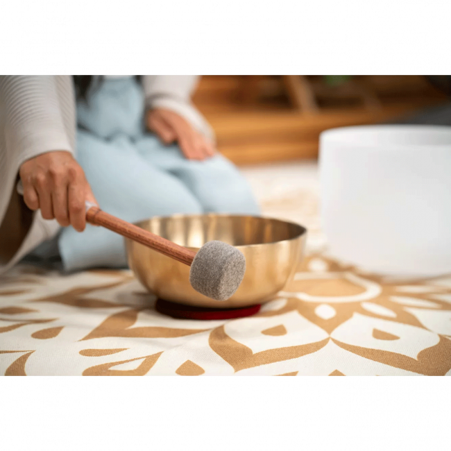 Kaksipäinen malletti, joka sopii tiibetiläisille metalliäänimaljoille sekä kristalliäänimaljoille. Helpottaa tilanteita, joissa mallettia pitää vaihtaa koko ajan äänimaljjatyypin mukaan.- Kaksipäinen malletti sopii erilaisille äänimaljoille